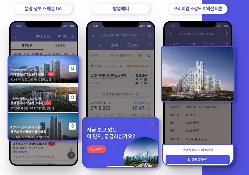 호갱노노 분양 정보 스페셜 DA분양 정보 클릭은 Only 이곳에서 분양 정보 메인 페이지 상단 노출로 높은 주목도를 확보하며, 관심 유저 타겟팅을 통해 효과적인 메시지 전달이 가능합니다. TV광고 알아보기