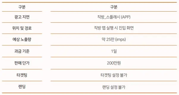 스플래시 광고는 사용자가 앱을 실행하는 순간, 가장 먼저 노출되는 풀스크린(Full-Screen) 이미지 기반 광고 포맷으로 브랜드 인지도 강화와 단기 집중 노출에 특화된 프리미엄 광고 상품입니다. 앱 이용의 진입 지점에 위치해 있어 방해 요소 없이 전면에 노출되며, 기존 배너나 알림 광고보다 월등한 시각적 몰입도와 브랜드 임팩트를 제공합니다. 짧은 시간 동안 강력한 메시지를 전달해야 하는 이벤트, 분양 오픈, 신규 런칭 캠페인 등에 최적화되어 있습니다.