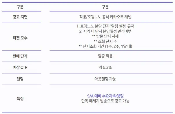 채널톡 스페셜디테일한 고객분석 그리고 맞춤 문자광고 예) 서울특별시 강남구, 서초구, 송파구 – 2주 내 15억 이상 단지 3개 이상 조회한 유저 & 분양일정 관심 유저예) 창경궁롯데캐슬시그니처 단지 ‘알림 설정’ 유저 단지 정보를 직접 확인한 이후, **관심도를 명확히 드러낸 유저(알림 신청자)**를 선별하여실질적 구매 가능성이 높은 타겟에게 정밀하게 광고를 노출할 수 있습니다 TV광고 알아보기